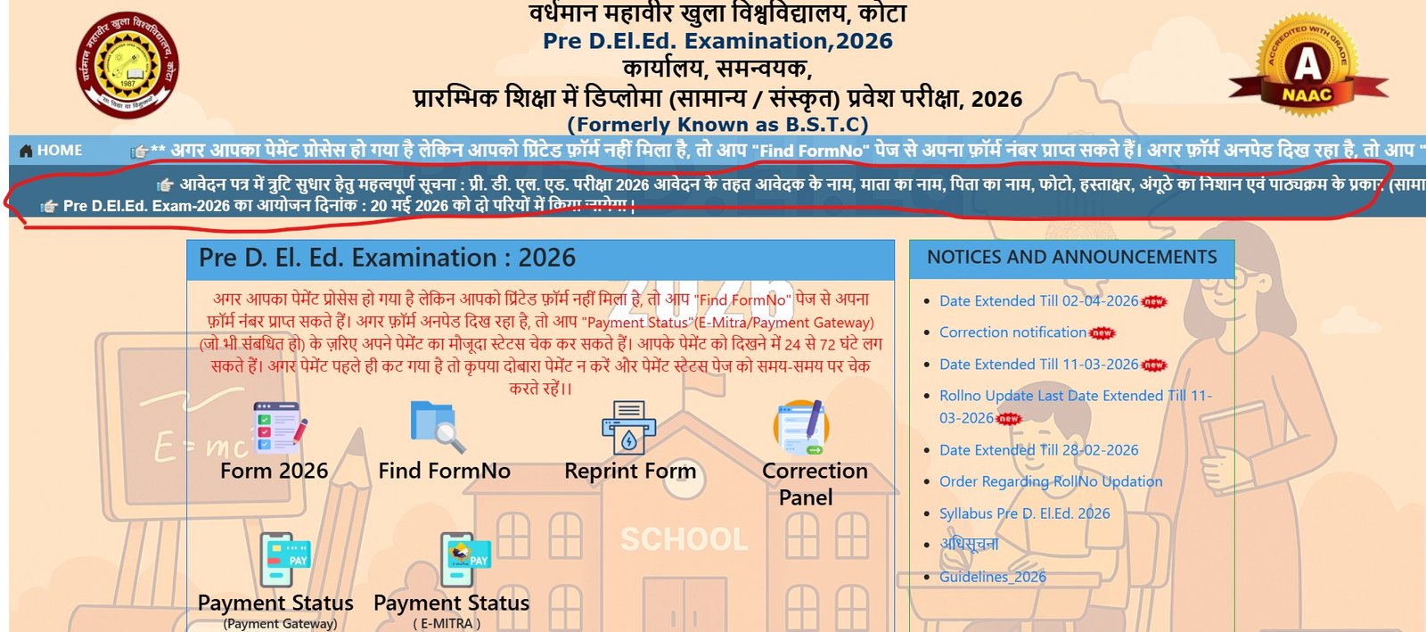 Rajasthan BSTC Pre Deled Exam Date 2026 NoticeClick Here