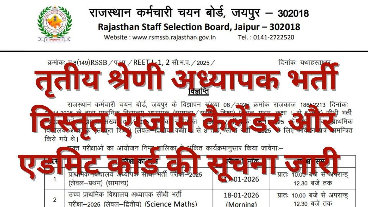 Rajsthan 3rd Grade Teachers Bharti Admit Card 2026, राजस्थान तृतीय श्रेणी अध्यापक भर्ती परीक्षा विस्तृत एग्जाम कैलेंडर और एडमिट कार्ड सूचना जारी